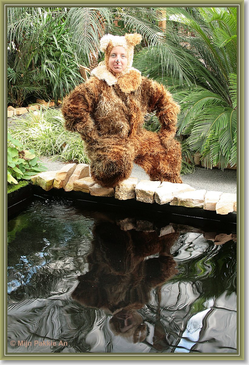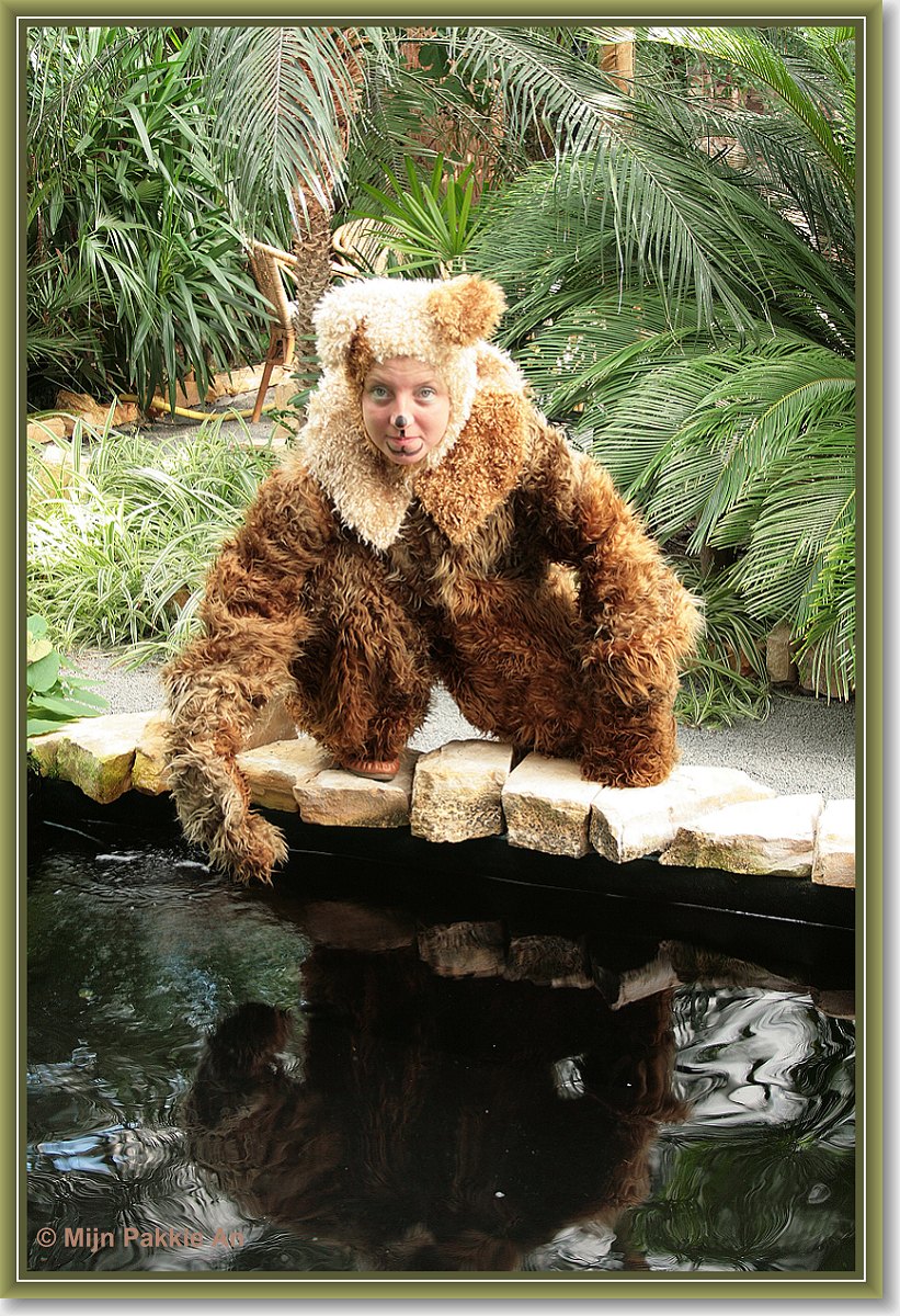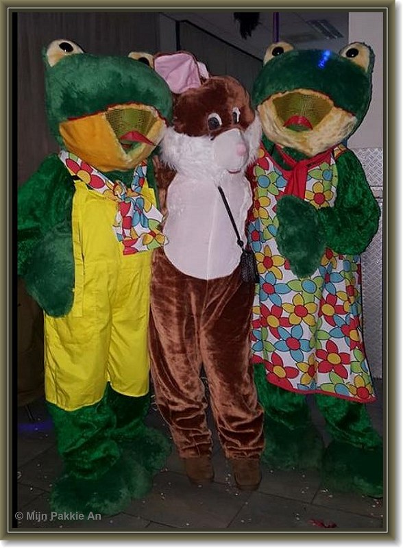 Bij dieren vindt je oa;Apenpak, gorilla, wolven pak, kikker, maya de bij, pinguin, haas, konijn, olifant, beer