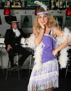 We gaan terug in de tijd naar de ‘roaring twenties’, de roerige jaren ’20.De tijd van The Great Gatsby, Al Capone en maffiapraktijken.Trek een flapperdress, of Charleston jurkje aan , en dans de charleston!