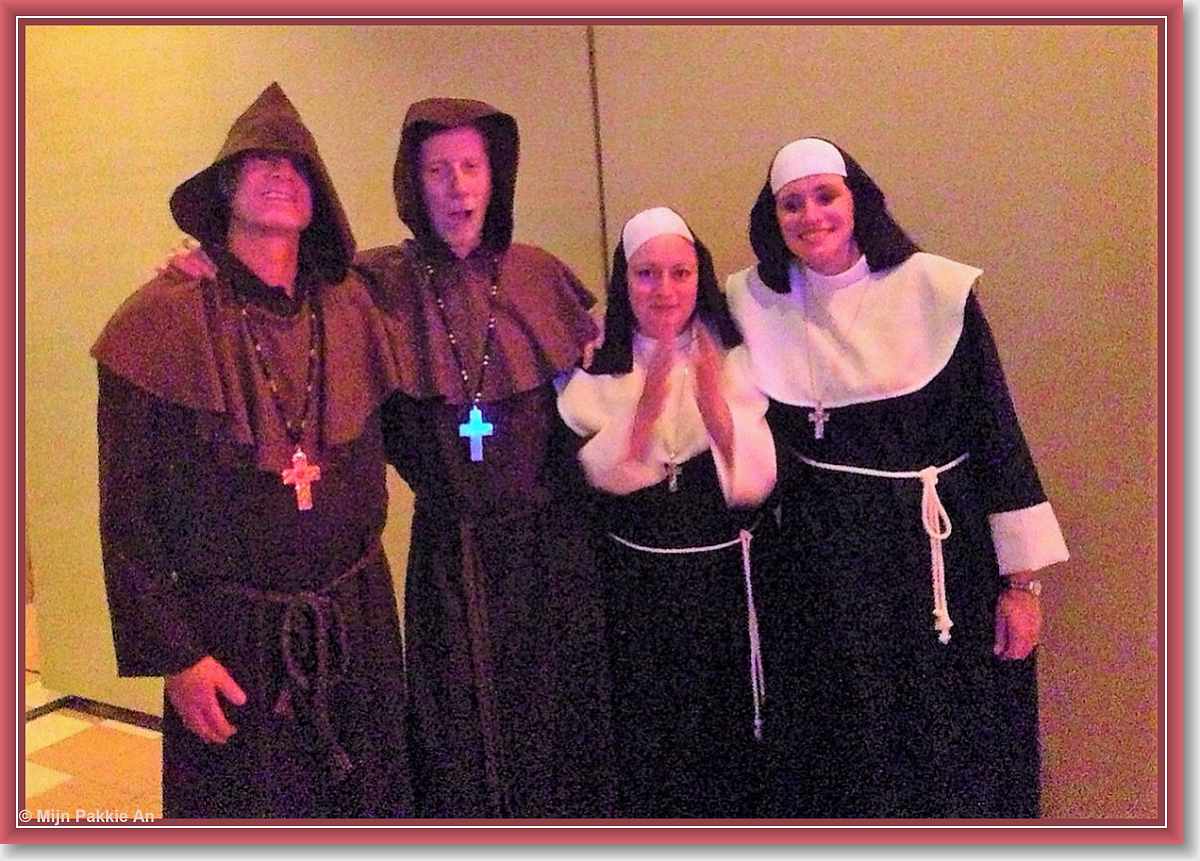 Waan je in het klooster met deze monnikspijen en nonnenhabijten.Sister Act is er niks bij!Of wil je liever verkleed als Paus, pastoor of kardinaal?Het kan allemaal! …er komt zelfs soms een engeltje voorbij…